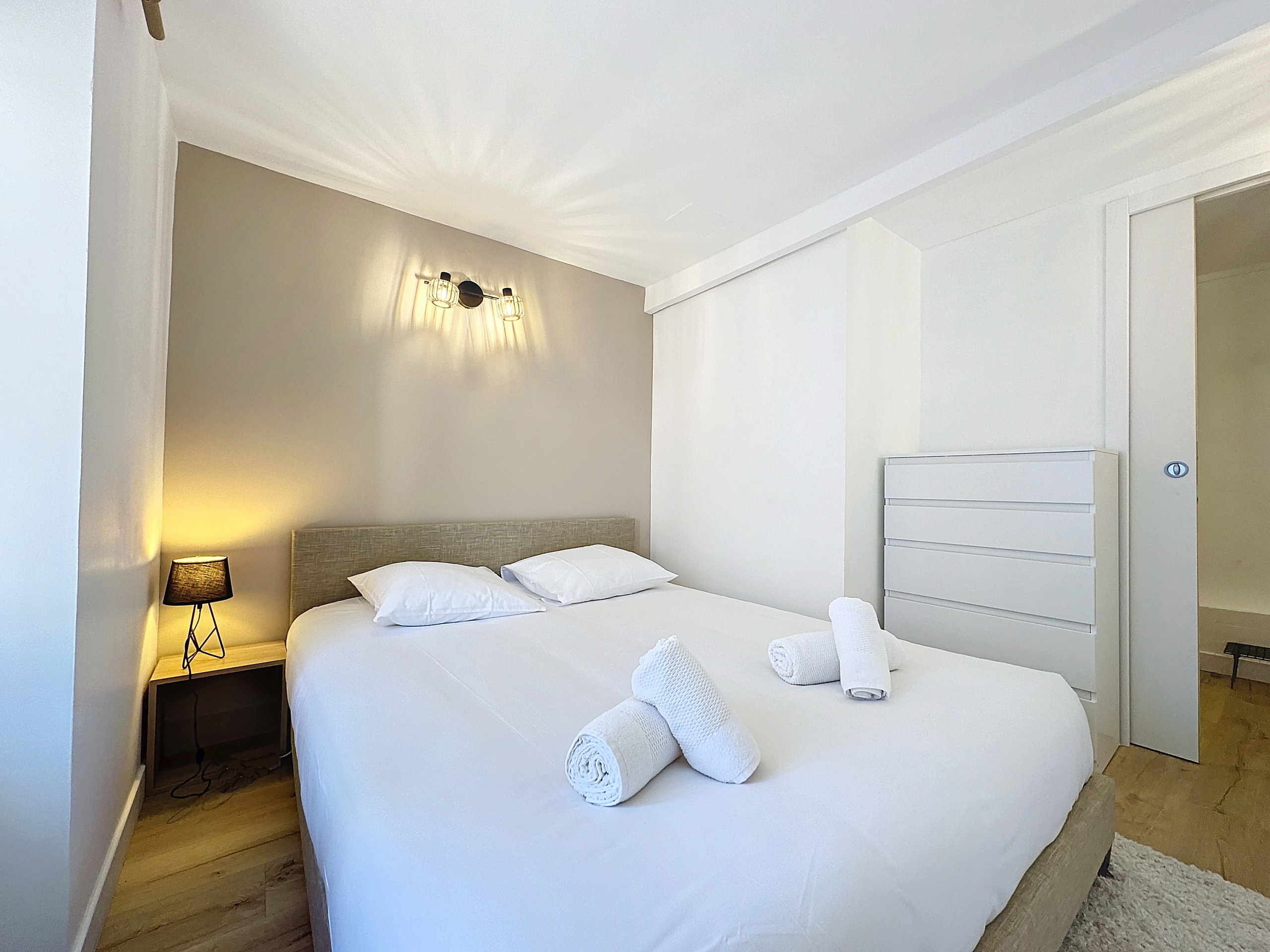 Une entrée, une agréable pièce de vie de 25m² avec un petit balcon, une cuisine aménagée et équipée semi ouverte, deux chambres avec literie en 140*190cm, une salle de bain et un wc indépendant.