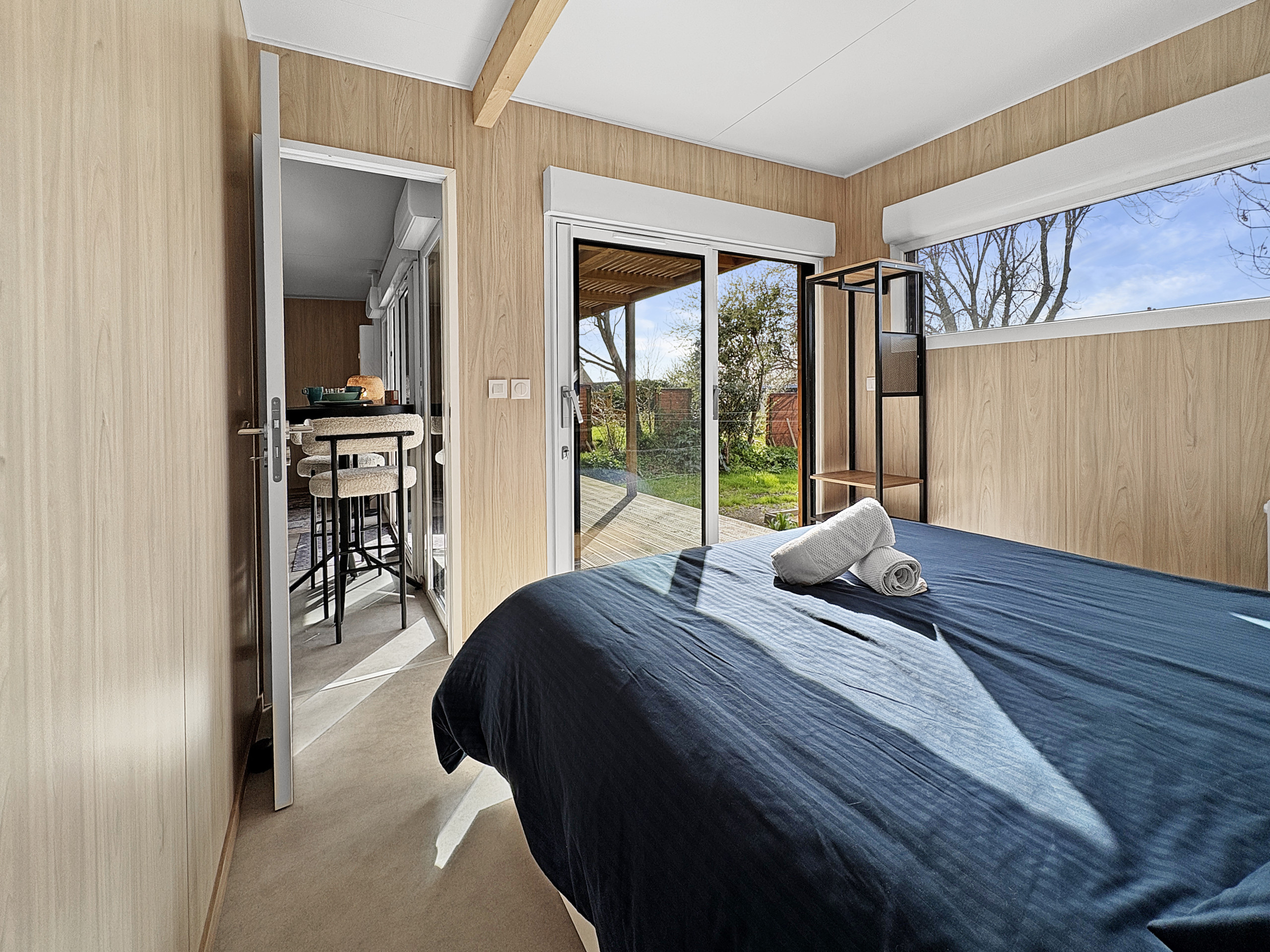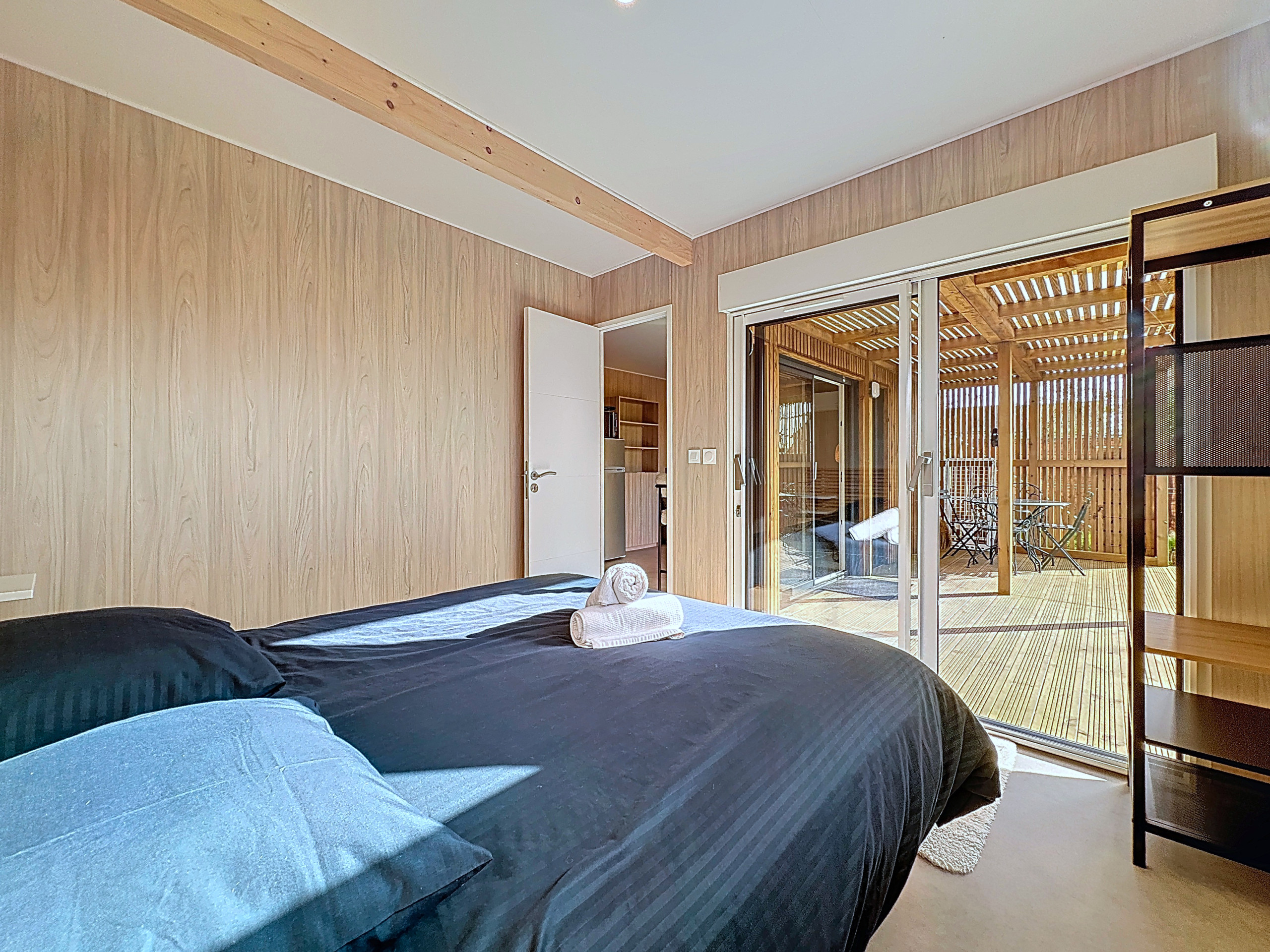 Vue mer, charmante maisonnette en bois pour deux personnes avec climatisation.