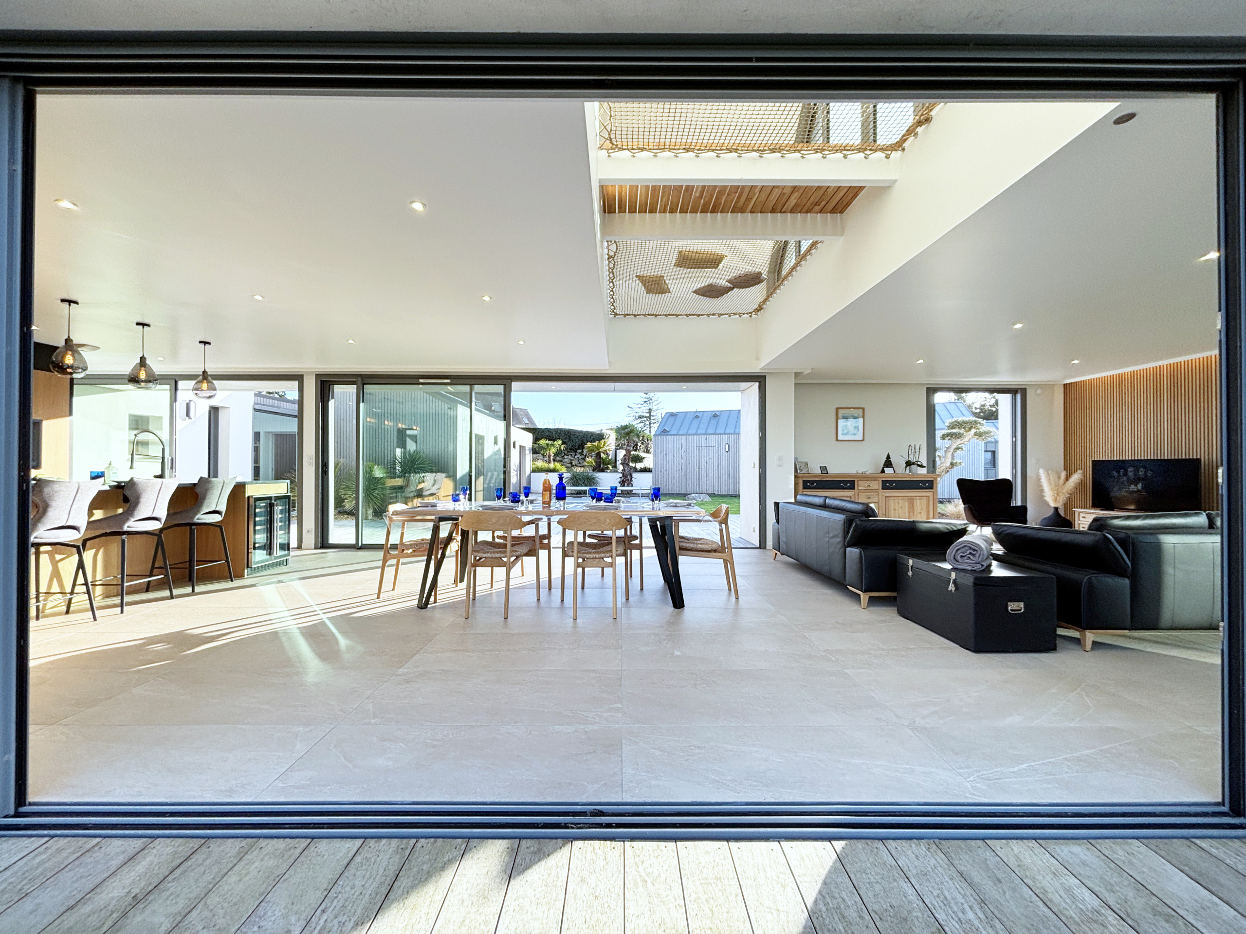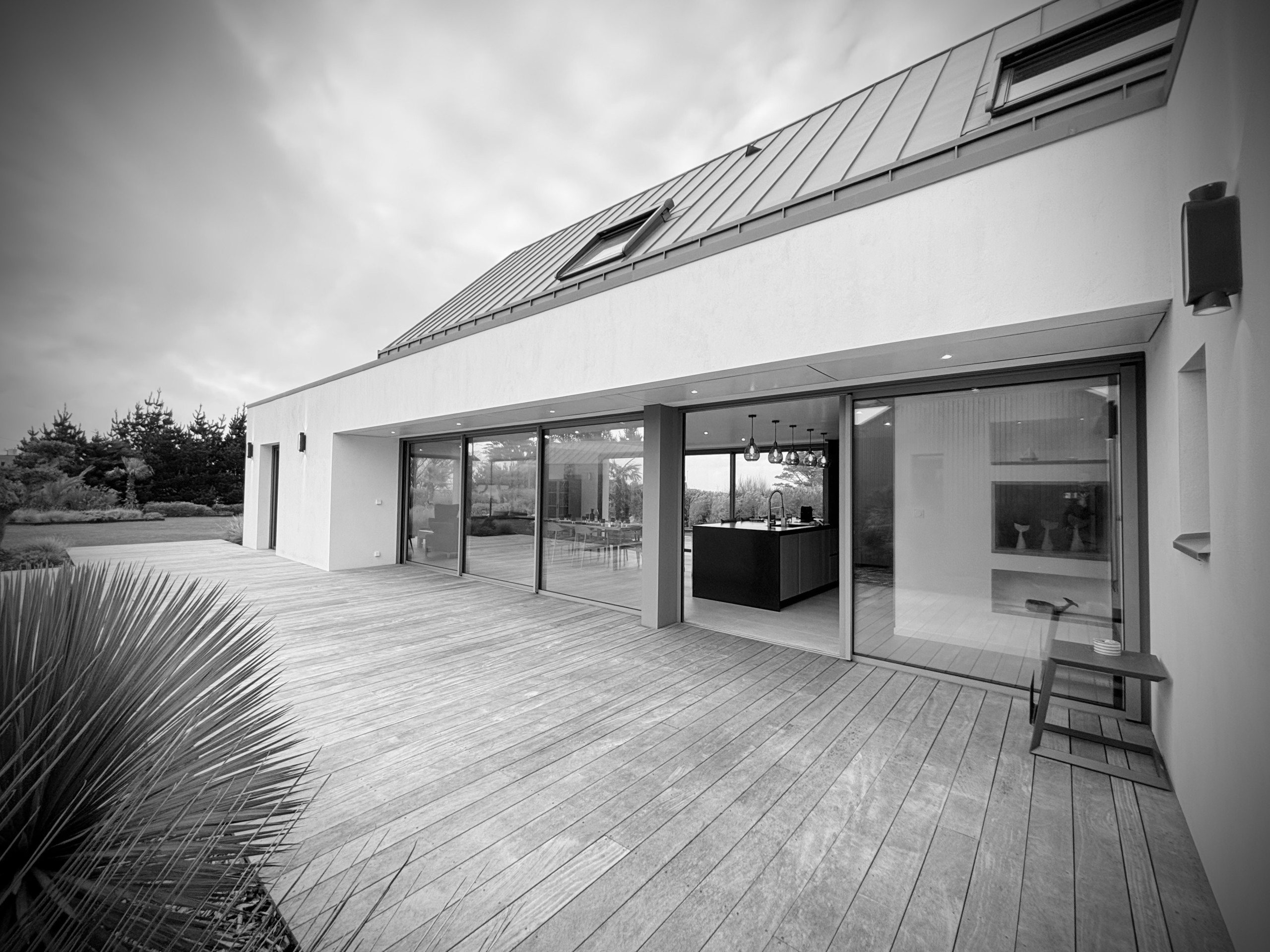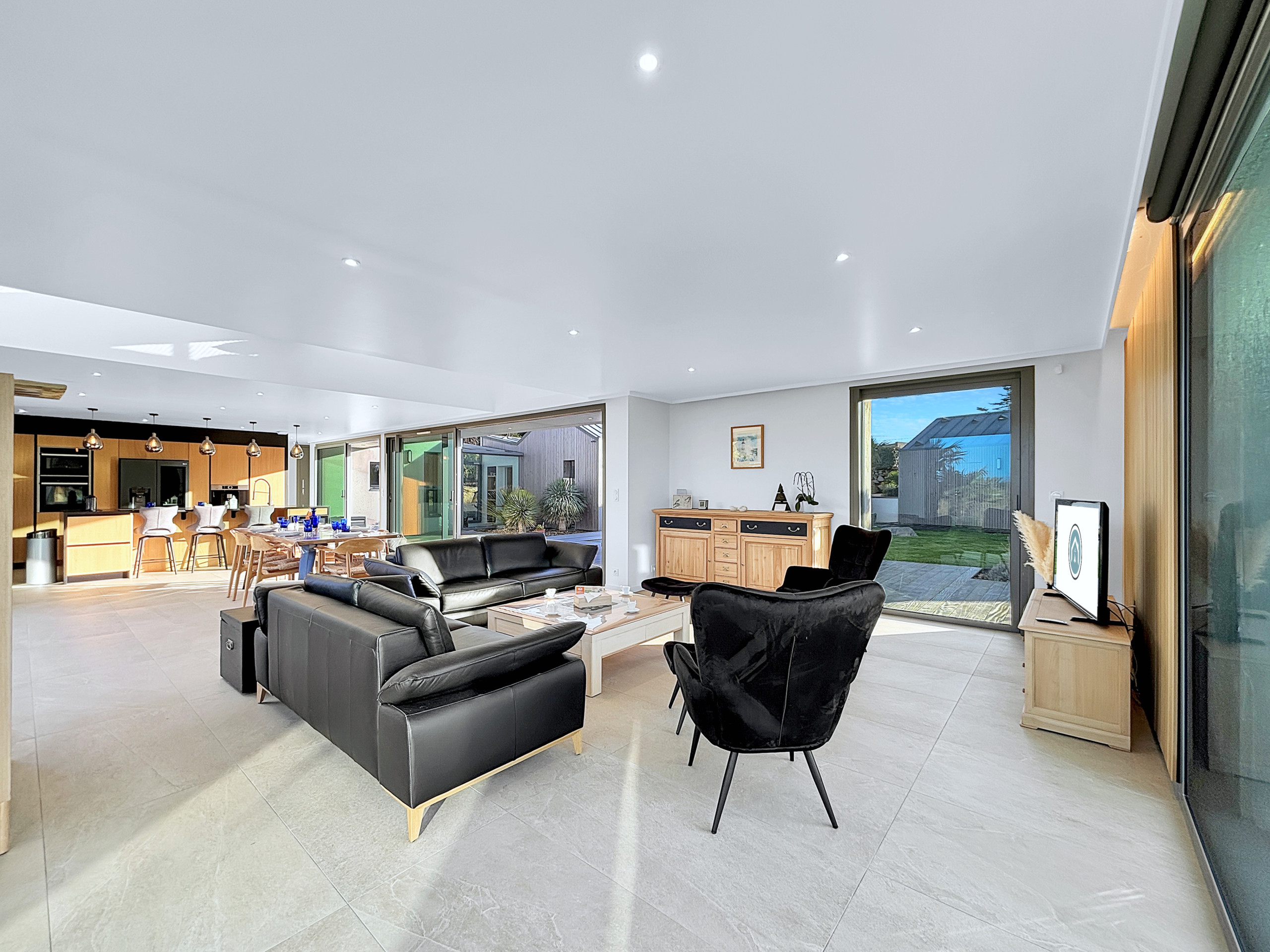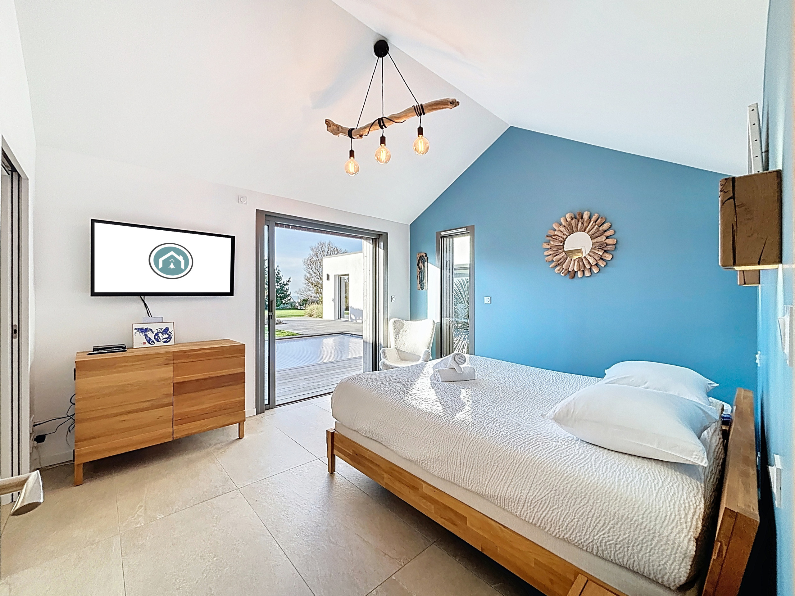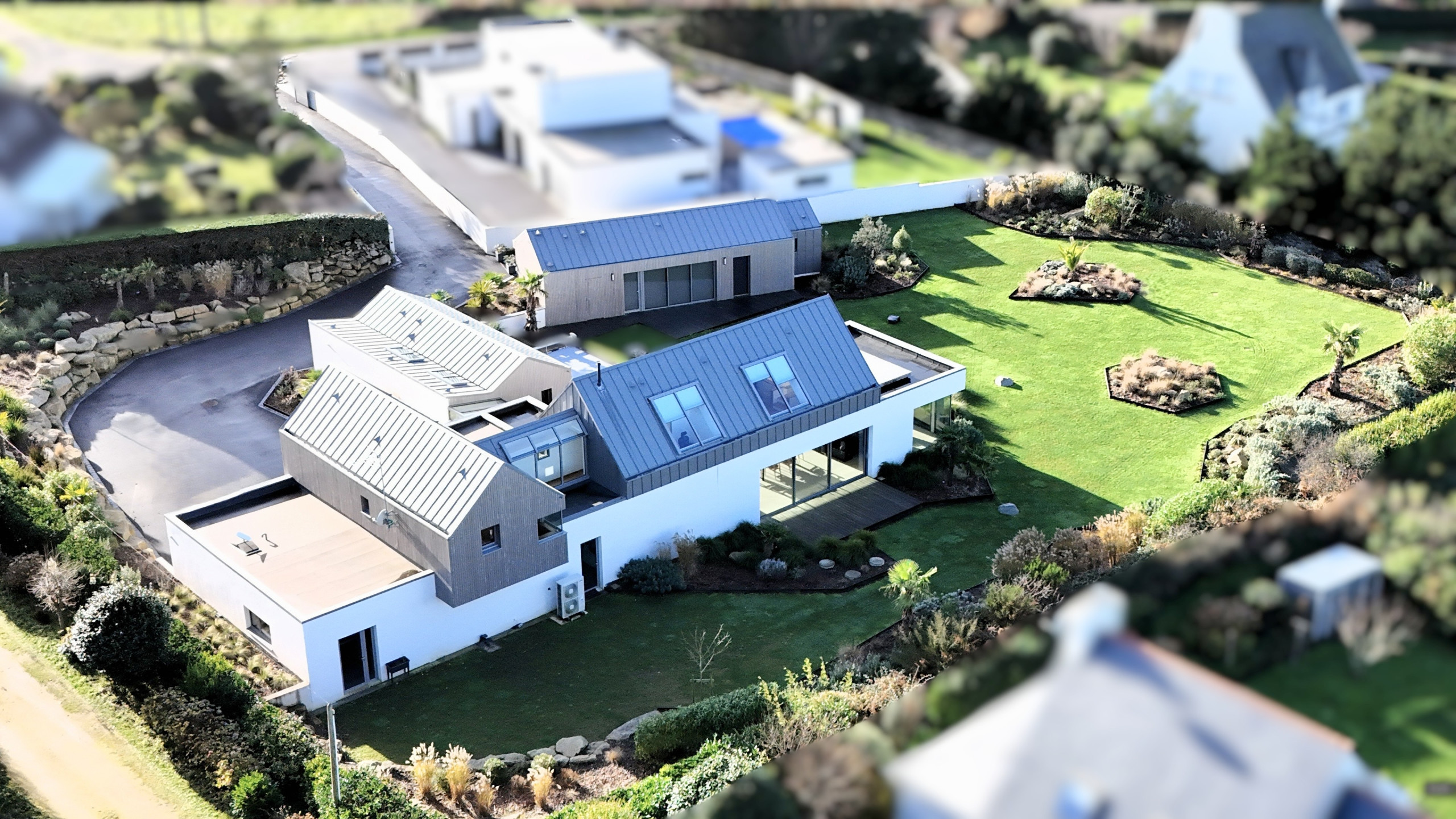 Avec un emplacement idéal à proximité des plages et pour visiter le Finistère nord, magnifique villa d’architecte haut de gamme de 228 m² avec quatre chambres, piscine, parc paysagé de 3000 m² pour 8 personnes.